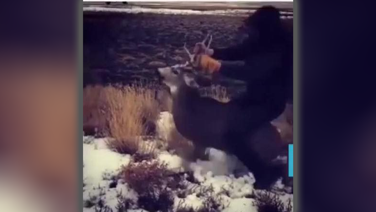 In the video, the mule deer buck can be heard grunting and bleating as the rider sits on top. At one point, the buck managed to escape its rider and began jumping into a nearby fence while it attempted to escape the enclosure.
